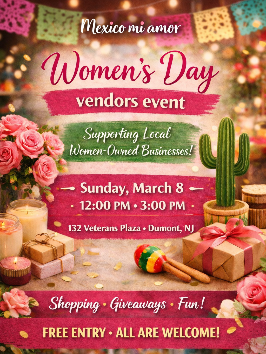 Celebrate International Women's Day with us at Mexico Mi Amor's Women's Day Vendors Event — a vibrant market dedicated to supporting local women-owned businesses! Browse Todo Bien's collection of signature and seasonal candles, perfectly suited for gifting or a little self-care. Meet talented local makers, enjoy giveaways, and soak in the festive atmosphere.